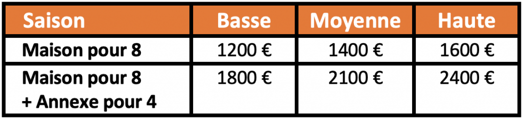 Haute saison : Juillet et Août